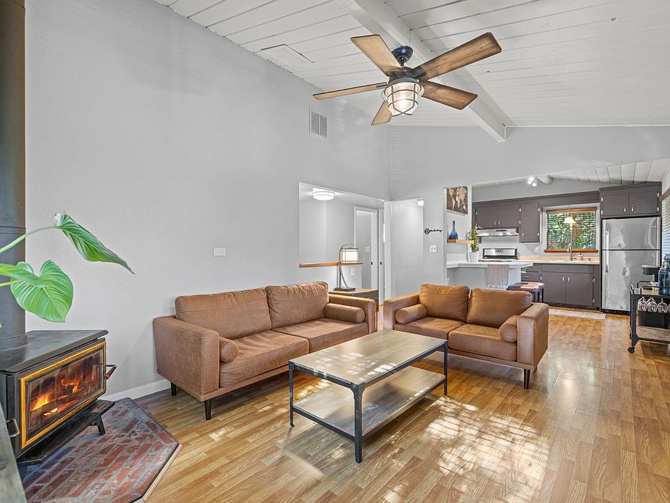 Looking for a charming home near Apple Hill?? Located just steps from historic Main Street Placerville, this charming rustic retreat blends small-town character with mountain serenity. Relax on your wraparound porch with morning coffee, or gather on the side patio around the fire pit under the stars. Inside, the cozy living room and wood-burning stove make winter nights warm and inviting, while newly installed carpet and fresh touches throughout add comfort and move-in appeal. The open layout flows effortlessly for easy living. Upstairs you'll find two comfortable bedrooms and the main living area-- each filled with natural light-- while the spacious lower-level primary retreat offers privacy, an ensuite bath, and room to unwind. The generous lot feels peaceful and private, surrounded by nature yet only minutes to dining, shopping, and year-round events downtown. Perfectly located with easy freeway access for trips to Lake Tahoe. Whether you're a first-time buyer, downsizing, or looking for a fantastic rental or AirBnB, this one checks every box for charm, comfort, and location.