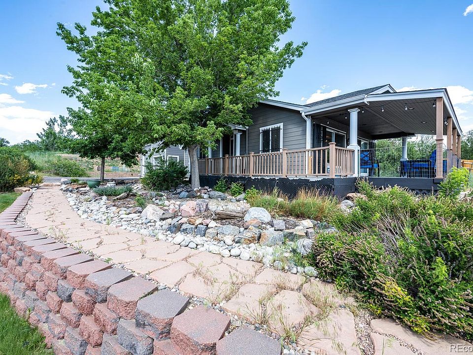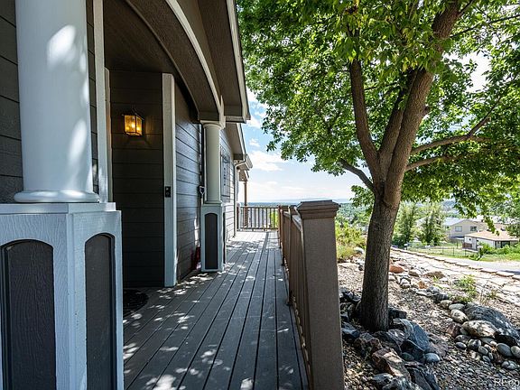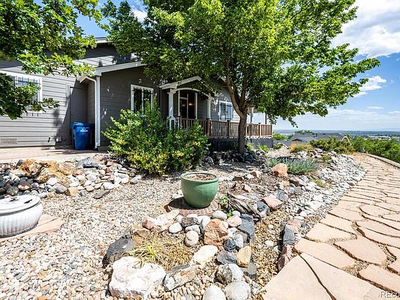 Wow! This beautifully remodeled home offers amazing south western front range views in a prime location! The completely updated home features quartz countertops, upgrade cabinetry and stainless steel appliances. The home offers laminate hardwood and tile throughout and a beautiful primary suite with luxurious bathroom with stand alone shower and jetted tub. The spacious family room walks out to a covered deck that overlooks the southern mountain range. Relax and enjoy the views over looking the city lights from the hot tub! Enjoy the low maintenance Trex deck and hardy-board exterior siding on both the home and the garage as well as the zero scape landscaped lot. There is a small lawn in the back with sprinkler system and landscape is on a drip system. The property also offers a 30x30 heated, insulated detached garage with concrete flooring, 220 and a loft area for extra storage. In addition there is a RV pad with electrical and sewer hook up on the side of the garage. Seller is in process of building a wall in the family room and converting this lovely home into a two bedroom home with two large bathrooms. The additional bedroom will walk out to the covered deck. This property has been beautifully updated and perfectly maintained. Buyer to verify all information.
