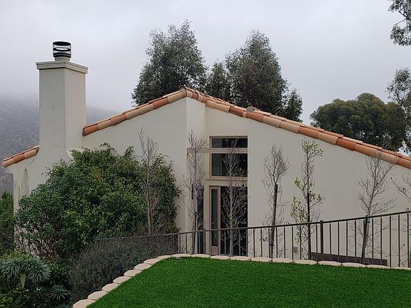 Totally unique stand alone guest house with a private driveway in an idyllic location with beautiful mountain and ocean views. It is also behind one of the few guard gated communities in Malibu, and only a couple of minutes from PCH. It's 750 sq ft plus a 250 sq ft loft, and comes with a washer and dryer in the unit, and even has central air and heat. Also, has a real wood burning fire place, slate floors, 4 balconies, and extra high ceilings in the main room. There is no noise from PCH, and all windows are dual glazed to keep unit very quiet. Owner pays all utilities, which are included in the rental price.