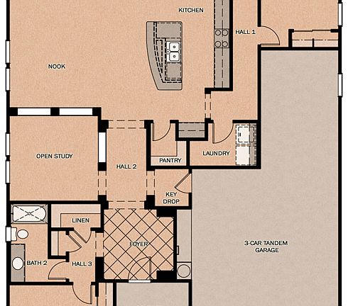Single story- 3 Bedrooms, 3 baths, great room, 3 car garage, Walk in pantry, Living room, or additional bedroom.