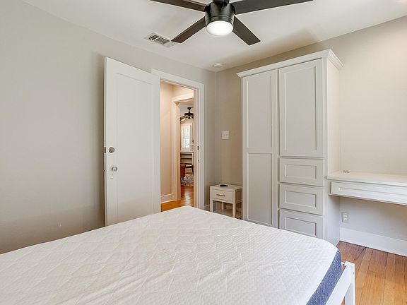 Faux fireplaceGas stoveBuilt-in desk and storageRecessed lightingStainless steel appliancesOriginal hardwood floorsFenced backyard