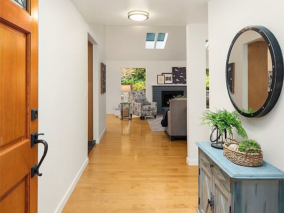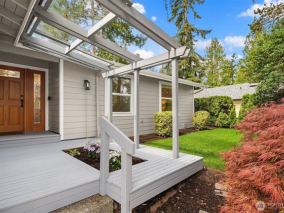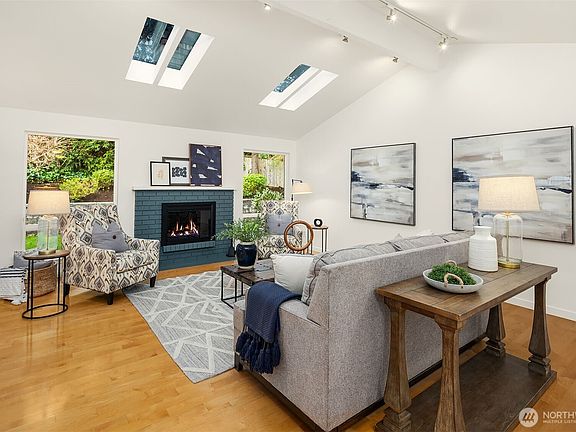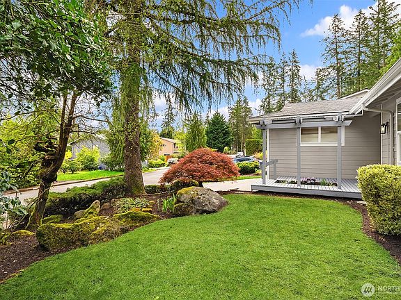 Inviting Light & Bright one-story home in a fabulous location! Oversized Great room offers stately fireplace, vaulted ceilings, 4 skylights, extensive hardwoods & wall of windows overlooking the private backyard. New carpet & Fresh interior paint. Remodeled Kitchen has slate floors, sleek stone countertops, stainless appl's & large island. Dining area surrounded by windows. Primary suite has vaulted ceilings & 3/4 bath. Versatile large bonus/flex rm is an ideal media/office/game rm w/Queen Size Murphy bed. Updated baths. Private backyard offers large patio, stone pathway, level lawn & backs to treed area for wonderful privacy. Gas heat & A/C. Bellevue schools, Close to MS, shopping, dining, Idylwood Park, Lk Samm & easy freeway access.