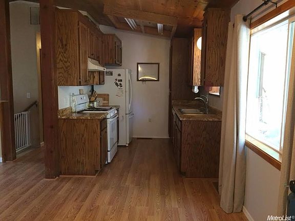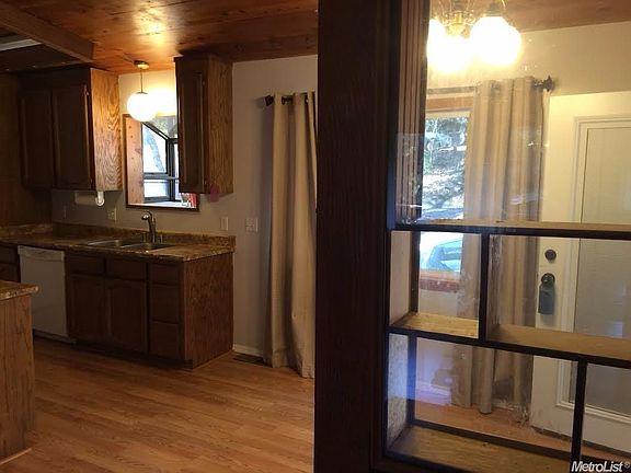 This roomy, open concept 3 bdrm, 2 bath home sits on nearly 2 acres with a pond. Home boasts newer floors, vaulted wood ceilings, skylight, and laundry hookups on both levels. Huge knotty pine family room/man cave exits to the outside & garage. Newer exterior paint & roof. Paved road to home. A must see!