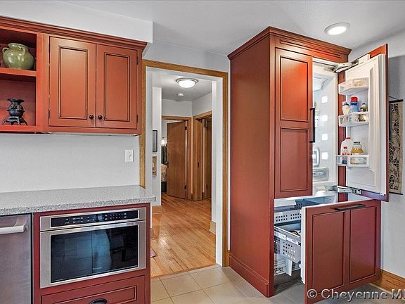 Your dream kitchen is waiting for you! Imagine your family gathered together at holidays. This charming historic updated home has timeless elegance, flow, and functionality. An open concept kitchen allows you to entertain family and friends with Thermador appliances, double oven, gas stove, baking center, pantry, farmhouse style and vegetable sinks, and custom Schroll cabinets. Explore all the details of this exquisite kitchen with radiant heated floors. The primary main floor suite is updated to include a primary bathroom with clawfoot soaking bathtub, double-headed walk-in shower, radiant heated floors, and oversize walk-in closet. Don’t miss out on all the historic and architectural details this home has to offer. The home is situated on 3 generous lots with a fully fenced backyard, sports court, protected patio and a tree house to make childhood memories. Two-car detached garage with alley access and off-street RV/trailer/boat parking. Close proximity to Frontier Park, Warren Air Force Base and Downtown Cheyenne.