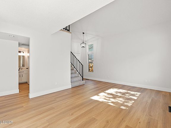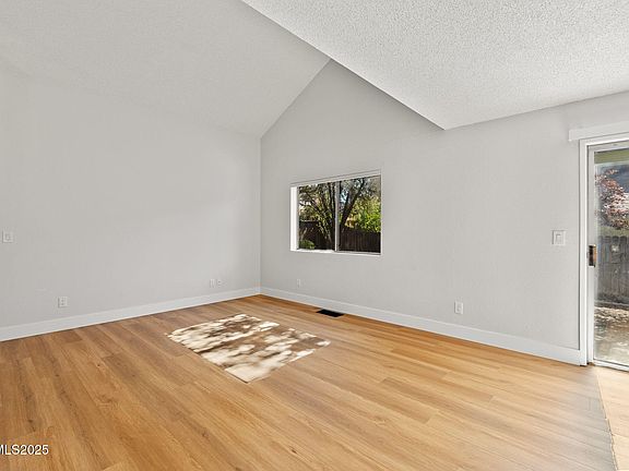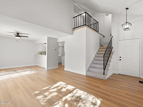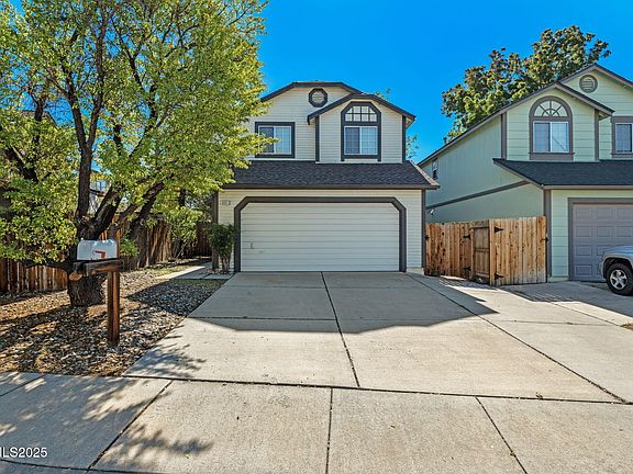 Beautifully updated 3-bed, 2.5-bath home offering 1,270 sq ft of comfort and modern style in a desirable Sparks location outside the McCarran loop with no HOA. Featuring a beautiful 1 year old roof that is under warranty. Additionally, nearly every surface of this home has been refreshed, including new interior paint, flooring, baseboards, lighting, and hardware throughout. The kitchen has refinished countertops and brand-new appliances—refrigerator, stove/oven, and microwave—while the bathrooms feature updated vanities, mirrors, and lighting for a clean, modern feel. The refinished primary shower, new window coverings, and newer window screens add even more thoughtful touches. You'll enjoy peace of mind with a heater and water heater only 9 years old, included stackable washer & dryer, and comfort year-round with A/C and ceiling fans. Outside, this property has a sprinkler/drip system, mature apple and almond trees, and additional landscaping that makes the yard feel like your own private retreat. The garage offers hardwood storage shelves, workbenches, and pegboard—perfect for hobbies or projects. With a blend of quality upgrades and reliable systems, this home is truly move-in ready and packed with value. Don't miss your chance to own a beautifully maintained home in a great location!
