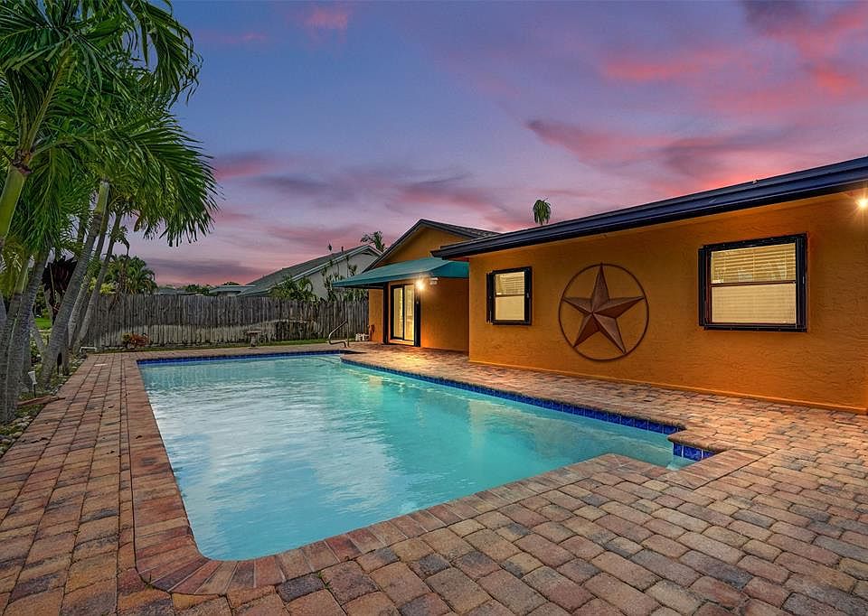 Talk about checking ALL the boxes. This one wins! 4/2 with a pool and a 2 car garage, on the water. Boxes checked! Incredibly well cared for in a great community, set back and secluded. When you walk in the first thing you notice is the high vaulted ceilings and wide open space. Updated kitchen with stone counters and stainless appliances. Separate "flex" room off the kitchen that opens up to the huge pool and patio deck. The 2 car garage open right up into the kitchen for easy access. Impact rated garage door, some windows are impact rated as well. Bathrooms are updated. The bonus "pool" room is perfect for fun. This is a quiet community with sidewalks and lots of large trees in the community.