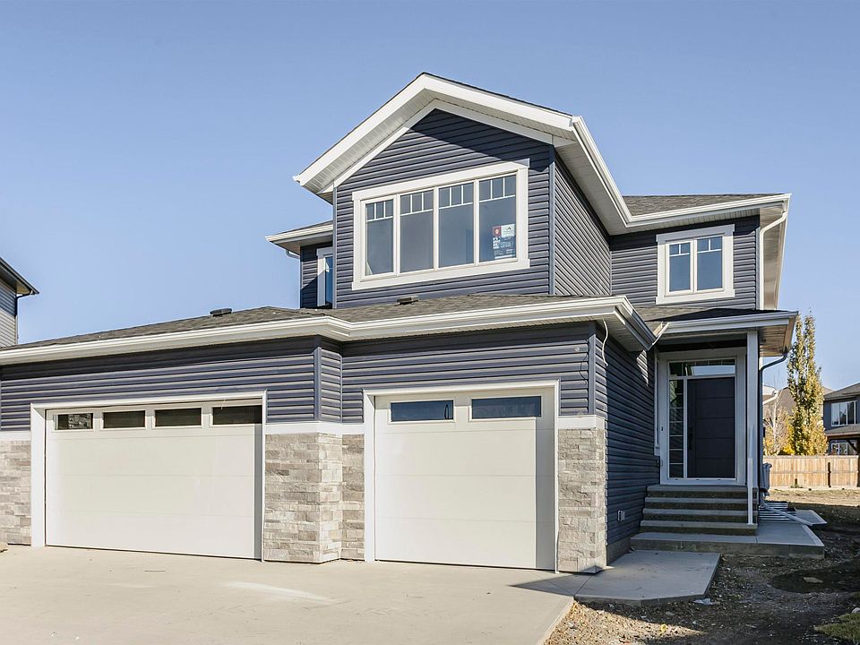 DISTINCT & UNIQUE- PERFECT PACKAGE- PLACE CHALEUREUSE- BRAND NEW 2 Storey + Basement, TRIPLE GARAGE-HUGE PIE LOT-2664 sq ft, 4 BDRM + BONUS room home. Lots of Windows for all the light. Main floor has open concept Great Room, modern upgraded KITCHEN with SPICE KITCHEN & walk in pantry, Spacious Laundry, Bedroom/Den and 4PC BATH ON MAIN. 4 bedrooms, 3 baths, and spacious Bonus Room upstairs. Master has luxury 5 pc en-suite with his and hers sinks Shower huge Walk in Closet. Lots of upgrades including TRIPLE PANE WINDOWS,TANKLESS HOT WATER, DUAL STAGE FURNACE, modern kitchen with QUARTZ counters thru out the house. Huge Pie Lot with big back yard and Covered Deck for entertaining. Linear Fireplace, extensive wood work with built in organizers. Close to all amenities, walk to schools, shopping, easy access to all major routes, South Edmonton, Airport, Leduc. New Home 2-5-10 year Warranty Basement has SIDE ENTRANCE, utilities/rough-ins tucked away