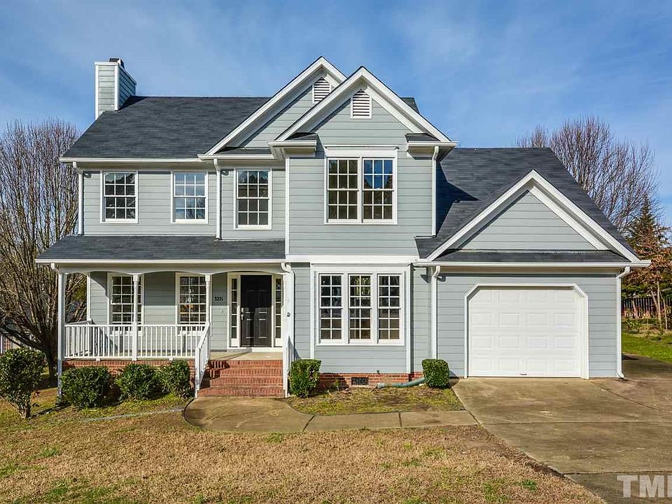 This Raleigh two-story cul-de-sac home offers a fireplace and a two-car garage. Upgraded features include fresh interior paint, new vinyl flooring, and new carpet in select rooms. This home comes with a 30-day buyback guarantee. Terms and conditions apply.
