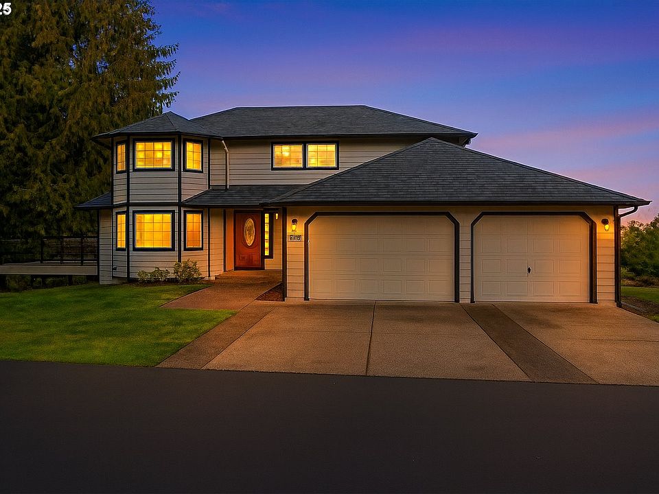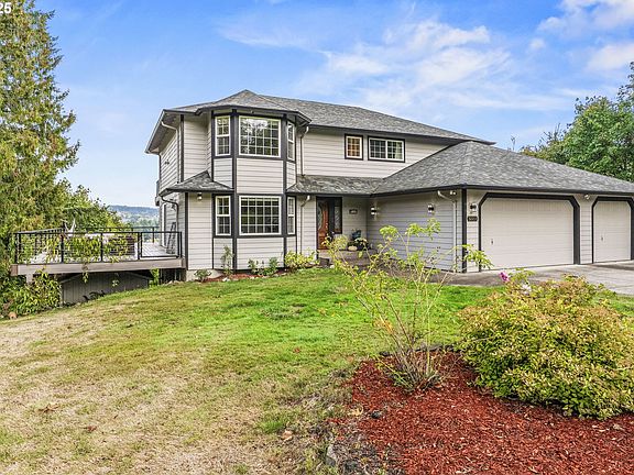 Perched on the rim of the Lewis River, this stunning 3-level Ridgefield home combines breathtaking views, versatile living spaces, and a rare 5-acre setting. From the decks and windows you can take in sweeping vistas of the river valley, the historic town of La Center below, Mt. St. Helens, and Mt. Adams. The surrounding wetlands attract diverse wildlife—bird lovers will especially enjoy watching the white Trumpeter Swans that winter in the lowlands.Designed for indoor-outdoor living, the home features over 1,500 sq. ft. of composite decking across 3 levels. The main wraparound deck extends from the dining and living areas, while the private upper deck connects directly to the spacious Primary Suite. A third covered deck below offers year-round outdoor enjoyment.Inside, the gourmet kitchen shines with granite counters, tiled flooring, stainless steel appliances, inlaid lighting, a huge picture window, and an eating bar. The living room with propane stove, large family room, and oversized bedrooms—each with walk-in closets—create abundant comfort. The luxurious Primary Suite boasts a jetted tub, dual sinks, walk-in shower, and private deck access.The lower level provides flexible multi-generational living with its own primary-style bedroom, full bath, exterior entrance, and covered deck. Exceptional storage is found throughout, plus a 3-car extra-deep garage with workbench.Property highlights include fruit trees, blueberry bushes, RV parking, a paved driveway, and two heat pumps for year-round efficiency. A private trail for Eagle Crest residents leads to the Lewis River for hiking, canoeing, birdwatching, swimming, and paddleboarding.Conveniently located near the new Ridgefield Costco, Ilani Casino, and I-5, this property offers privacy, nature, and accessibility—an extraordinary combination in a classic design home.