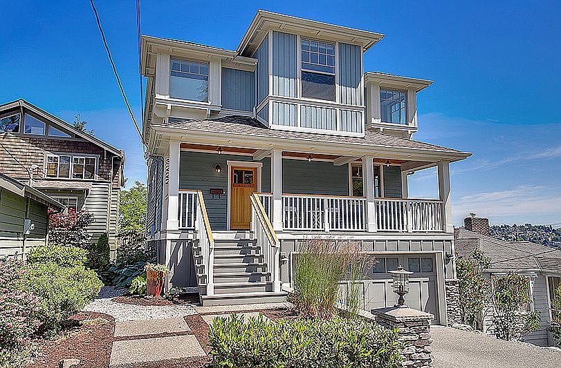 Gorgeous luxury VIEW home in the heart of Magnolia! Built in 2009, this 5 bedroom, 3.5 bath home has everything you need for todays modern lifestyle: 1) an open floor plan with chefs kitchen, formal dining, and family room leading to a fabulous VIEW deck perfectly designed for entertaining, 2) 4 bedrooms and 2 baths up including a master bedroom with French doors, fireplace, jetted tub, and walk-in closet; 3) and fully finished daylight basement featuring a rec room with built-ins wired for your home theater system, a 5th BR and full bath perfect for guests, full size laundry area, and level backyard access. Additional amenities include premium appliances, hardwood floors, wainscoting throughout, high-efficiency heating, a 2 car garage, and fabulous views of Mt. Rainier, Elliot Bay, and Downtown. Built green and pre-wired for solar panels. In a quiet residential neighborhood and minutes to everything including top rated schools, parks, dining, and grocery.