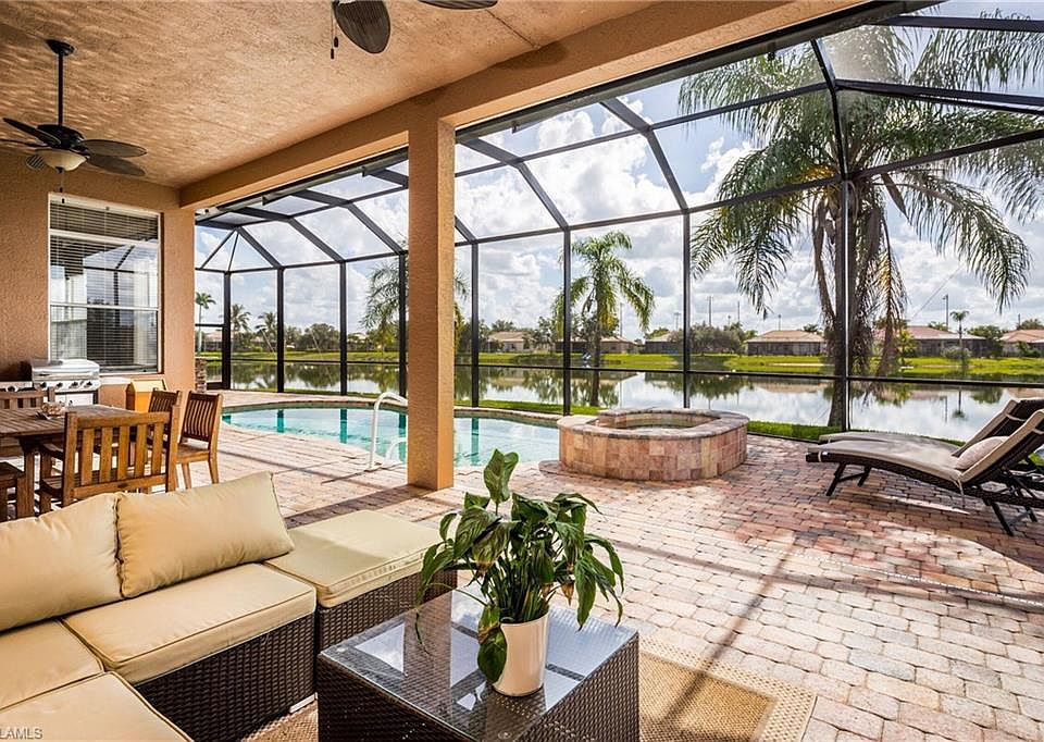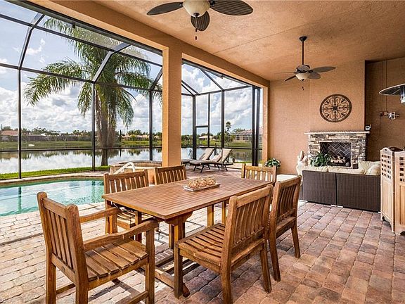 Welcome to this Lake front beauty, located at the end of a SAFE Cul-de-sac, on a Large pie shaped lot! 4 Bedrooms, Den/Office, Formal Dining, 3 Baths, 3 car Garage. The Builder EXTENDED the roof on the LANAI for a larger covered Outdoor living space. This was a CUSTOM FEATURE. ALL BRAND NEW: ROOF, CAGE & SCREENING, EXTERIOR PAINT, GUTTERS, 3 OVERHEAD GARAGE DOORS, CEILING FANS ON LANAI, CARPET IN 3 GUEST ROOMS, and HOT WATER HEATER!!! The A/C was replaced in 2013, along with new Stainless Steel Appliances. Newer Whirlpool Duet Washer/Dryer on Pedestals. Whole House WATER Filtration system!! AND THE POOL.... 30' LONG, with gorgeous spa, HEATED and SALT WATER!! POOL BATH located at lanai... AND INSIDE.... Tile on the diagonal, SURROUND SOUND everywhere, including the garage and Lanai! 12' Ceilings in main part of house, along with 8' doors in main portion of house. Massive WALK IN PANTRY! Side yard is FENCED, and the location at the end of the cul-de-sac makes this a far SAFER site for kids who are playing!