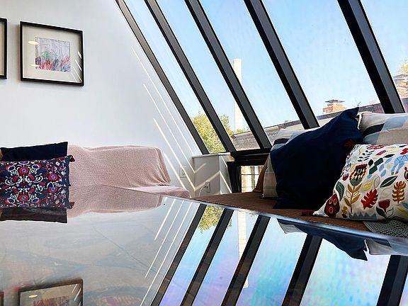 This fully-furnished 2 bedroom, 2 bathroom condo is an architectural masterpiece designed by the Georgetown Harbor Complex architect (Arthur Cotton Moore) located within 100 feet of the waterfront, one block from local bakeries, cafes, shops, and restaurants, a movie theater, and with two nearby garages. The building is celebrated as an iconic postmodernist architectural gem nestled in a historic small alley of Cherry Hill Lane close to restaurants, shops, and the Georgetown canal. This unit occupies the last three top levels of the building and is completely renovated, newly painted, and fully furnished with carefully selected furniture, paintings, and artworks. There is no residential unit similar to this one as it features an open and spacious living area, a built-in bar, cathedral-height ceilings with two levels of skylights, a wood fireplace, and unobstructed views of historic Georgetown and the Canal. The northern exposure of this unit is ideal, enjoying a continuous soft daily light with no glare. The whole unit is finished with custom hardwood floors, new kitchen appliances, a large in-unit washer, and dryer, and beautifully finished two bathrooms with stainless faucets and shower accessories. The Main Bedroom is extremely spacious located at the lower level with a custom walk-in closet with built-ins and an en-suite bath enjoying double vanities with a sweeping mirror. A cozy seating area makes it more enjoyable with the entertaining streaming flex TV The upper-level bedroom and bath overlook the two-story cathedral skylights with endless views of the upper part of Georgetown. The unit comes with parking in the assigned communal parking for 3222 Cherry Hill residents.