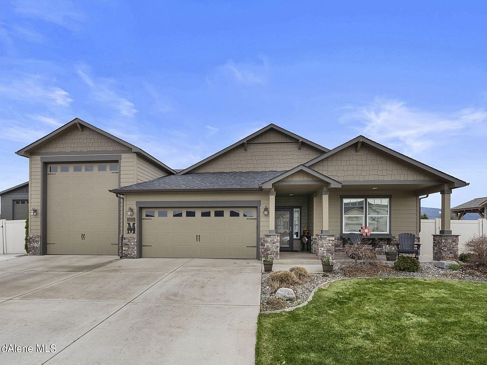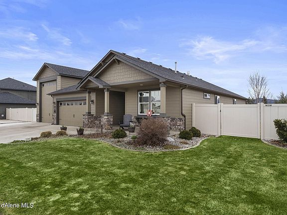 Welcome to your new home! This exceptional property offers the perfect combination of entertainment and comfortable living. With 1894 square feet of living space, this lovely home features 3 spacious bedrooms and 2 bathrooms. The modern design provides a cohesive flow throughout the space. The contemporary kitchen is equipped with quartz countertops, a breakfast bar, and a large pantry. The open concept living area is highlighted by a gas fireplace, new window coverings and an anti-glare film, top-of-the-line carpeting, and abundant natural light. The primary bedroom boasts a luxurious en-suite bathroom with a soaking tub, step-in shower, dual vanity, and a sizable walk-in closet. Step out onto the covered patio or porch to enjoy the breathtaking landscape, full fencing, and relaxing sunsets. Plus, enjoy the added convenience of parks and walking paths right outside your door. Parking is made easy with an extra-deep two-car garage, a 16x45 RV bay, and an open concrete RV pad. Additionally, this home comes with a versatile 24x30, insulated and finished shop that features a mini-split and pellet stove. Contact us now to schedule a viewing of this incredible home!