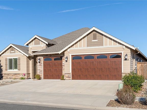 This stunning Sycamore Creek home on the north side of Chico sits right beside the nature preserve, with direct access to bike paths leading to Upper Bidwell Park. With beautiful curb appeal, low-maintenance landscaping, and charming flagstone paths to the front door, this home is as inviting as it is elegant. Step inside to a thoughtfully designed, upgraded interior featuring high ceilings and an open floor plan that enhances the sense of space. The living room, kitchen, and dining area seamlessly flow together, creating the perfect environment for both everyday living and entertaining. The kitchen is gorgeous, showcasing a large island with bar-top seating, granite countertops, a travertine tile backsplash, and stainless steel appliances. Tray ceilings add a touch of sophistication, while the living room boasts custom solid maple built-ins. Designed with a desirable split floor plan, this home includes a guest bedroom and full bathroom, along with an office featuring French doors—an ideal space for remote work or an easy conversion into a fourth bedroom. The primary suite is an expansive retreat with private access to the backyard, a walk-in closet, and an ensuite bathroom featuring a gorgeous walk-in shower and a dual-sink vanity with granite countertops. A junior suite with its own private bathroom adds even more flexibility and convenience. The backyard is a peaceful haven, complete with a covered patio, custom pavers that extend the outdoor living space, and pet-friendly turf for easy maintenance. Additional features include plantation shutters throughout, a whole-house fan, holiday outlets, and a spacious 3-car garage. Enjoy the incredible outdoor lifestyle this location offers, with trails leading to Hancock Park, Wildwood Park, and Upper Bidwell Park—perfect for hiking, mountain biking, and horseback riding. Situated in a wonderful neighborhood, this home is a true gem. Don’t miss this opportunity!