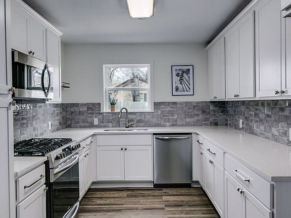 This lovely historic home has undergone a stunning renovation and is in a prime location! It is near the Arkansas/Texas state line, providing easy access to nearby events and restaurants. The kitchen has been fully renovated and now boasts new cabinetry, appliances (including an oven that doubles as an air fryer), an automatic touch faucet, quartz countertops, and a stylish tile backsplash. All the living rooms, dining areas, and bedrooms have been updated with new vinyl plank flooring. The primary bathroom now features new ceramic tile. The original terrazzo tile in the entryway and hall bathroom has been preserved to maintain the home's charming character. The main en-suite bathroom has been completely remodeled and now includes a spacious walk-in shower. Lastly, the screened-in porch is a beautiful addition that provides all-weather entertainment space. With three bedrooms, two bathrooms, two living areas, and two eating areas, this home is perfect for families. Remember to enjoy a friendly game of ping pong on the porch!