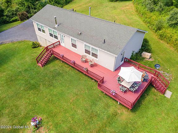 Gorgeous move-in ready 3-bed, 2-bath ranch on almost 11 acres overlooking majestic Schoharie Valley is ready to be your next home. The property features a spacious living room with floor-to ceiling stone fireplace and double doors leading to the back deck that looks out onto the large private yard, a bright kitchen equipped with an island, breakfast bar and stainless-steel appliances with access to the stunning wrap around porch and beautiful mountain views, primary bedroom with ensuite bath featuring a soaking tub and walk-in shower and main level laundry room. A full basement, 2-car attached, heated garage and detached 1-car garage offer an abundance of storage space. Located halfway between the villages of Middleburgh and Cobleskill and just under 45 minutes to Albany and Oneonta