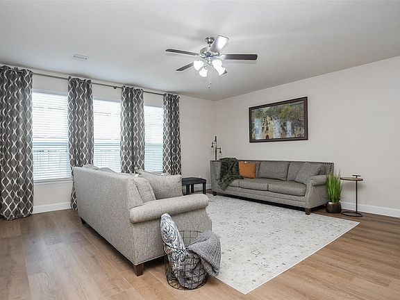 Welcome to your home! Beautiful 4 BR/2-1/2 bath/2 car garage. So many amazing features. Luxury Vinyl flooring throughout the first floor(2024); carpet on stairs(2024). Kitchen with SS appliances, granite countertops, gorgeous stone backsplash, 42 in cabinets, Refrigerator stays. Breakfast room w/hi ceiling & charming, bright bay window-perfect for enjoying that first cup of coffee! Kitchen open to den-handy breakfast bar. Bedroom-1st floor makes a great "flex" room to meet your needs-office, craft room, media rm or BR for guests. Upstairs Primary ensuite incl: Tray ceiling, built-in shelving, his/her closets, built-in, garden tub & separate tile-wall shower-great lighting. 2 more spacious bedrooms, huge gameroom(could be converted to 5th bedroom) & the utility rm w/shelving & the convenience of hanging rod. Blinds throughout. Enjoy the oversized, multi-level wood deck-Updated 10/2025 - perfect for entertaining, family BBQ's & still space to add a pool! Patio furniture stays w/home!