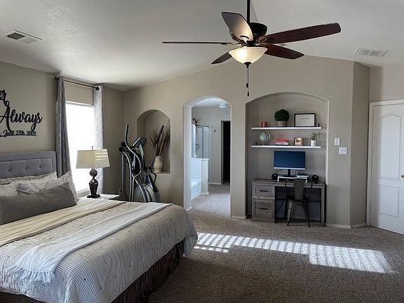 Located in the highly coveted neighborhood of Northern Meadows in Rio Rancho. Beautiful 5 BR, 3.5 BA with 2 master suites(one on each floor), black stainless steel appliances, remodeled bathrooms, tankless water heater, 2 newer AC units, and a backyard paradise! Outstanding park across the street from the home! APPROVAL REQUIREMENTS: ** Combined average of all Trans Union credit scores for all applicants 580+ ** Combined income of all applicants $45,000/yr+ ** History of Bankruptcy ok ** Animals welcome ** Security Deposit equal to 2 months rent (fully refundable) ** From application approval to move in takes about 35 days OPTION TO PURCHASE INFORMATION: There is no obligation to buy, but you have the OPTION to purchase the home, if you choose to do so. The purchase price of the home is determined prior to signing your lease, and stays the same for 12 months, even if the house is valued higher when you buy! Your only obligation is to fulfill a 12-month lease. After 12 months, you can choose to vacate, (and get your full deposit back, according to lease terms), renew your lease annually for up to 5 years, or buy the home at any time during your occupancy. Your choice! Once you are approved, you are able to choose from ANY one of the dozens of eligible properties available! Not the right property for you? There are plenty of rental homes with a rent to own option available across the ABQ Metro. Call/text Dominic today for more information This is general information that is summarized and is not all-encompassing. Terms and conditions may change without notice. For a complete breakdown of the program, or with any questions, or to apply, please contact Dominic Dominic Morales, Realty 1 of NM Call/text any time 5o573o3539 Listing Courtesy of Amre Real Estate