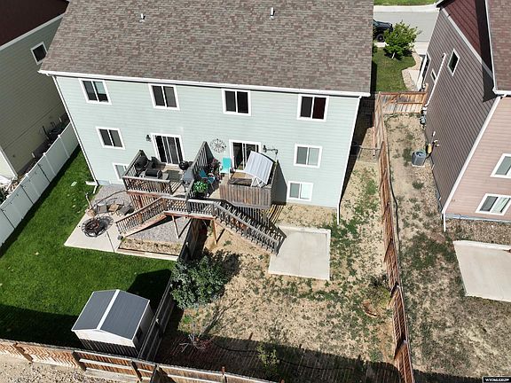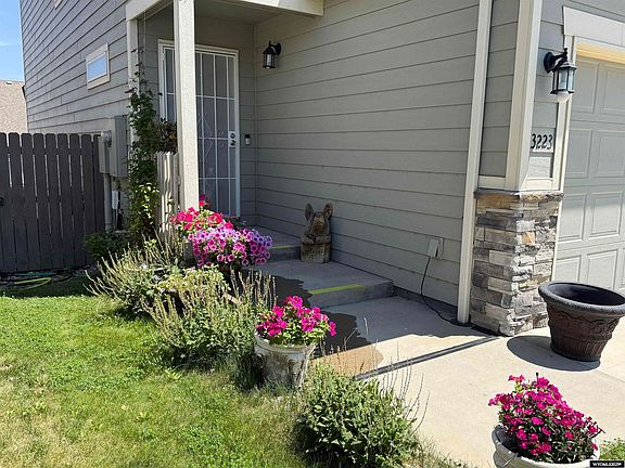 This beautiful one-owner twin home built by Tri-Mountain Homes is move-in ready. Located in a nice, quiet, newer westside neighborhood, close to shopping, the airport, North Platte River access, and short distances to Hwy 220, US25, and Outer Drive. The main floor houses the kitchen, dining and living area, and powder bath, all with LVT flooring. The entire home has upgraded light fixtures, fans, countertops, sinks and plumbing fixtures, new paint, new flooring, security system and an electric fireplace in the living area. Upstairs has 2 large, carpeted bedrooms, main bath, and laundry room which includes stacked LG washer/dryer, and 3rd primary bedroom has a nice walk-in closet with great storage. Master bath includes linen closet. An oversized 4th bedroom is in the basement, includes a large closet and is carpeted. A ¾ bath completes the space, with an unfinished extra room which could be used as an exercise/pet room, office or even a small 5th bedroom. Front yard has automatic sprinkler system.