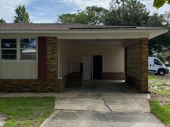 This brick ranch home located in Pine Valley has 3 bedrooms, 2 baths, a spacious kitchen and breakfast area, a den with a stone fireplace, a living room and/or formal dining area. This home is unfurnished and has hardwood floors throughout with tile in the bathroom. The carport has a large storage area, where the washer and dryer are located. There is a 18x12 wired workshop. There is a gray storage shed and detached building that will not convey with the property. The property has a large fenced in yard, which will be shared with the detached building. This home is conveniently located near a shopping center, restaurants, and it's a short drive to the beach!