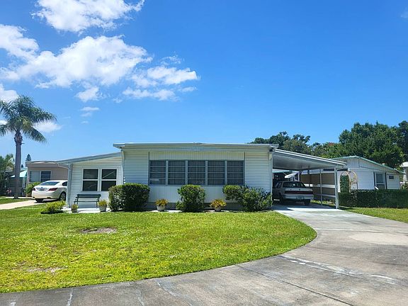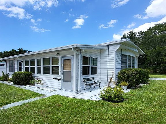 JUST LISTED IN PALM TERRACE! This spacious home (1,152 sf main home under air plus a 300 sf addition that includes a large utility room) has an extra-long drive and sits on the best lot in the community and is just steps to the clubhouse with pool, fitness center, sports courts and outdoor barbecue. It is located at the end of a quiet cul-de-sac with lots of green space and very little traffic. Lot 69 is a turn key furnished (ALL YOU NEED IS YOUR SUITCASE), 2 bed/2 bath with indoor laundry room, an all seasons room addition and a brand new 3 ton central air system 7/2024. The home includes a fully equipped kitchen with abundant cabinet storage plus reach-in pantry and breakfast bar for a quick bite before heading to the beach. L-shaped dining/living room combination is lined with large sunny windows allowing sunlight to flow freely. Sliding doors lead to the bonus all seasons room perfect for an office, studio or extra bedroom for the grandkids. The primary bedroom can generously accommodate a king size bed and has 2 closets plus lots of great built-in storage and an en-suite with step-in shower. Queen sized bedroom has wall-to-wall closet storage plus built-in dresser/vanity. The laundry room is conveniently accessed from the guest room and includes a utility sink and additional cabinet storage plus extra space for all the beach toys you'll want to enjoy the salt life in Florida! Palm Terrace MHC is a gated 55+, pet friendly community with a fabulous new clubhouse and amenities including fitness center, heated pool, outdoor kitchen and shuffleboard courts. Located in a prime location you are just minutes to all shopping needs, an array of wonderful restaurants, exciting downtown Sarasota and just 7 miles to the beautiful white sand beaches of the Gulf. Throw out a line, take a dip or enjoy an energizing walk along the shore. A never ending supply of fresh air, relaxation and some of the nicest people you'll ever meet! Monthly lot rent at Palm Terrace is $1006 and includes lawn mowing, taxes and amenities. Shown by appointment only M-S. All listing information is deemed reliable but not guaranteed and should be independently verified through personal inspection by appropriate professionals. American Mobile Home Sales of Tampa Bay, Inc. cannot guarantee or warrant the accuracy of this information, measurements or condition of this property. Measurements are approximate. The buyer assumes full responsibility for obtaining all current rates of lot rent, fees, and pass-on costs. Additionally, the buyer is responsible for obtaining all rules, regulations, pet policies, etc., associated with the community, park, or home from the community/park manager. American Mobile Home Sales of Tampa Bay, Inc. is not responsible for quoting of said fees or policies.