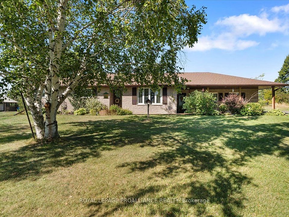 3223 Stirling Marmora Road, Stirling. Just minutes north of Stirling sits this beautiful all-brick bungalow on a picturesque 2.16-acre country lot complete with 36'x24' barn. Country roads take me home to this beautiful rural property that truly showcases pride of ownership throughout, featuring 3 spacious bedrooms and 3 bathrooms, including a fully finished lower level designed for both comfort and functionality. You'll fall in love with the stunning modern kitchen, thoughtfully updated with quartz countertops, ample cabinetry, and a bright, open layout that flows seamlessly into the dining and living areas. Off the dining room, the sun-room captures breathtaking west-facing views-perfect for relaxing and enjoying gorgeous country sunsets. The cozy wood stove in the lower level creates a warm and inviting atmosphere during the cooler months, complemented by a newer propane furnace, central air, and a battery backup system for added peace of mind. The spacious breezeway connects the home to the double car garage with both inside and outside entry, offering a perfect blend of practicality and charm. The bright, fully redone basement includes a fantastic workshop, cold storage and a large den that could serve as a fourth bedroom (no window). Outside, enjoy the beautifully landscaped grounds, covered front porch, and an incredible outdoor living are complete with a three-season shed an extra storage shed, and a wood shed. Appliances included: fridge, stove, dishwasher, and dryer. Located 20 minutes to Highway 401, Belleville, or Quinte West. this stunning country bungalow offers the perfect blend of modern comfort and rural tranquility.