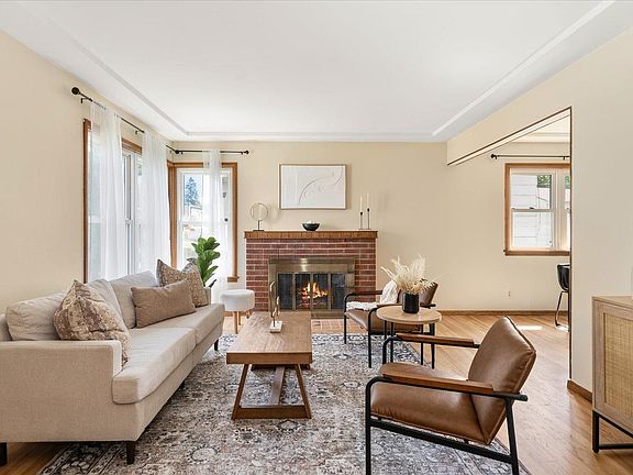 Well maintained both inside and out, this delightful Shadle rancher features three bedrooms, two baths, and over 1700 sq.ft. of finished living space. The original hardwood floors on the main level have been beautifully restored, the bathroom is refreshed with a new vanity and bathtub. The kitchen has a new tile backsplash and a large window looking out onto the backyard. The living and dining areas are generously sized and there is a cozy wood fireplace. The basement has been fully renovated, featuring new LVP flooring, a third bedroom with an egress window, and a second bathroom. The furnace and AC unit are newer, the wiring has been updated, and the roof is in good condition. There is a spacious storage shed as well as an oversized one care attached garage!
