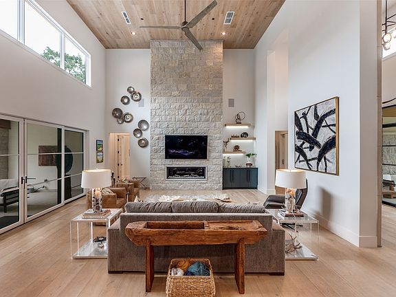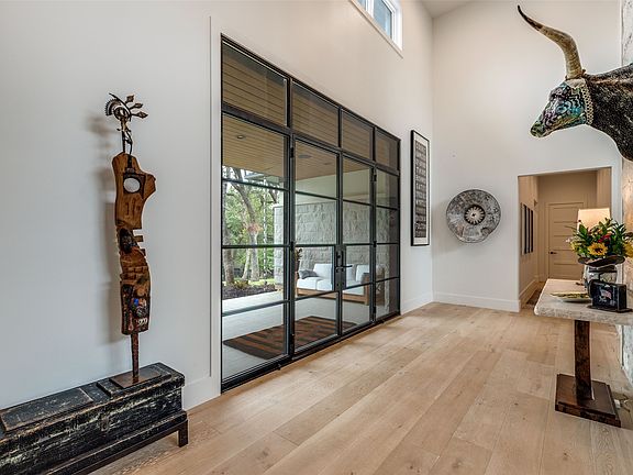 Welcome to an exceptional custom-built residence situated on one of the highest elevations in Grapevine, TX. This stunning home offers the perfect blend of luxury, functionality, & privacy all within a gated private compound shared with one other property. Designed for seamless single-story living this home features an open-concept layout that connects the expansive living & dining areas to a dream kitchen. The large living area has a soaring ceiling with a beautiful stone fireplace, amazing natural light & overlooks the rich amenity backyard. Upstairs, a family room opens to a sprawling outdoor terrace with elevated views of the backyard. The dream kitchen has a large central island—ideal for entertaining and is outfitted with premium appliances, adjacent to an oversized butler’s pantry perfect as a prep kitchen for entertaining. The lovely primary bedroom suite has an oversized ensuite bath with his & her walk-in closets. There are 3 spacious bedrooms each with their own ensuite bath. There are 2 additional half baths in the home. Additional interior highlights include a generous utility room, mud room, and dedicated dog room with access to a fenced dog run—perfect for pet lovers. The home includes a 4-car garage with custom glass doors & ample storage. Outdoors, enjoy resort-style amenities including a covered living & dining area perfect for family gatherings. The dining area has a fireplace & built-in grilling station. In addition, both the living & dining areas have electric retractable screens, Bromic heating panels, and a high-end misting system accompanied by an outdoor sound system—ensuring year-round comfort. The list of amenities is topped off with a sizeable heated swimming pool & spa, modern water feature & six Tucci Umbrellas for comfy shade in the Texas sun. With its private gated entry, breathtaking elevation, expansive grounds & thoughtfully designed spaces both inside & out, this one-of-a-kind property is truly a rare find in Grapevine.