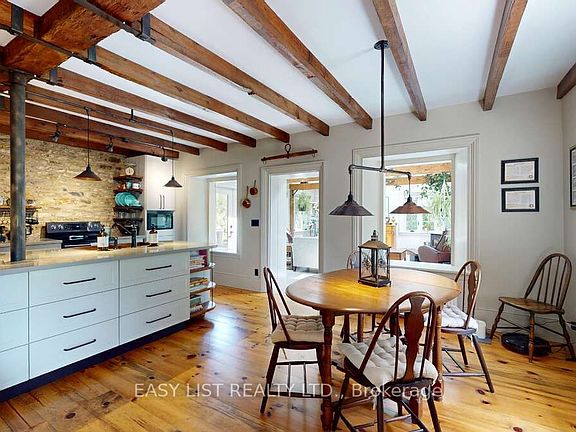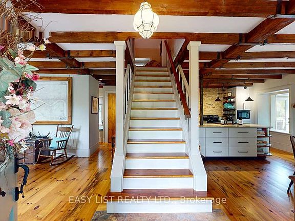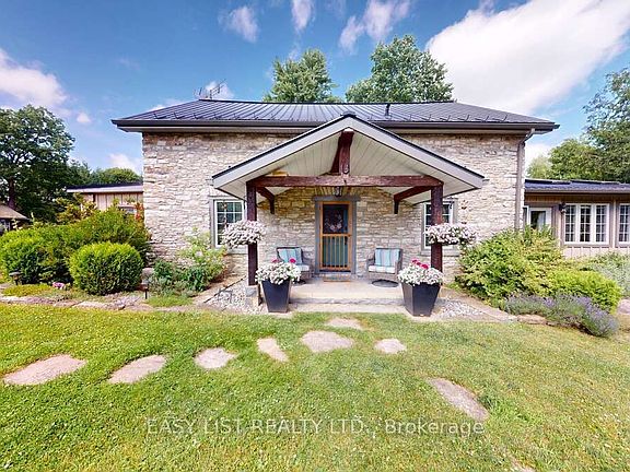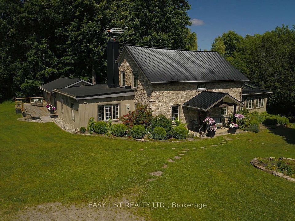 For more info on this property, please click the Brochure button. Prepare to say "wow" as you discover this beautifully renovated 1830s fieldstone home, privately nestled at the end of a winding driveway on 8.8 acres of mature trees, perennial and vegetable gardens. Extensive renovations have meticulously restored its stone exterior, hidden for a century, while updating mechanicals and windows to modern standards, all while preserving original doors and trims. The main level showcases exposed beams, plank wood floors, a well-appointed kitchen, featuring a copper farmhouse sink, handcrafted cabinetry hardware, and custom lighting which extends into the adjoining dining room. A stunning stone wall is the backdrop to the adjacent great room, boasting a cathedral ceiling, skylights, in-floor radiant heat, and a pellet stove, with deck access overlooking serene gardens and a seasonal pond. A den/flex room, laundry/mudroom, and powder room complete this level in the main house. Upstairs, find a spacious primary bedroom with a 3-piece ensuite, two additional bedrooms (one currently used as an office), and a main 4-piece bathroom. Accessible from the main house, but also with its separate entrance and generous deck, is a self-contained 950 sq ft secondary suite offering a huge main bedroom with sitting area, 3-piece bath, kitchen, powder room, and a combined living/dining area with a propane fireplace, making it perfect for today's multigenerational living. The property includes a large barn, ideal for storage and workshop space, plus two 12'x24' Amish Sheds (one used as a garage) and a smaller 10'x24' ideal for garden mower and tools. This exceptional family home is conveniently located 10 minutes from Brockville, 45 minutes from Kingston, and 1.5 hours from Ottawa. Beautiful home, do not miss out!