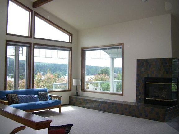 Beautiful panoramic vistas of Lake Whatcom & surrounding foothills. Generous window wall captures views & provides passive South facing solar savings. Popular open floorplan with soaring ceilings. Owners suite & study on entry level. Downstairs includes a second kitchen, living space & all the storage you'll ever need. Easy care yard & ideal for multi generational living.