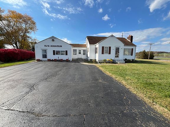 Check out this beautiful commercial property located in Hebron nestled on .39 acre lot. The property features a large detached 750 sqft garage with concrete floors and electric. Large parking area. Owners' residence consists of 2 bedrooms with the possibility of a third bedroom upstairs. One full bath and a full basement. Nice deck off the back of the property.