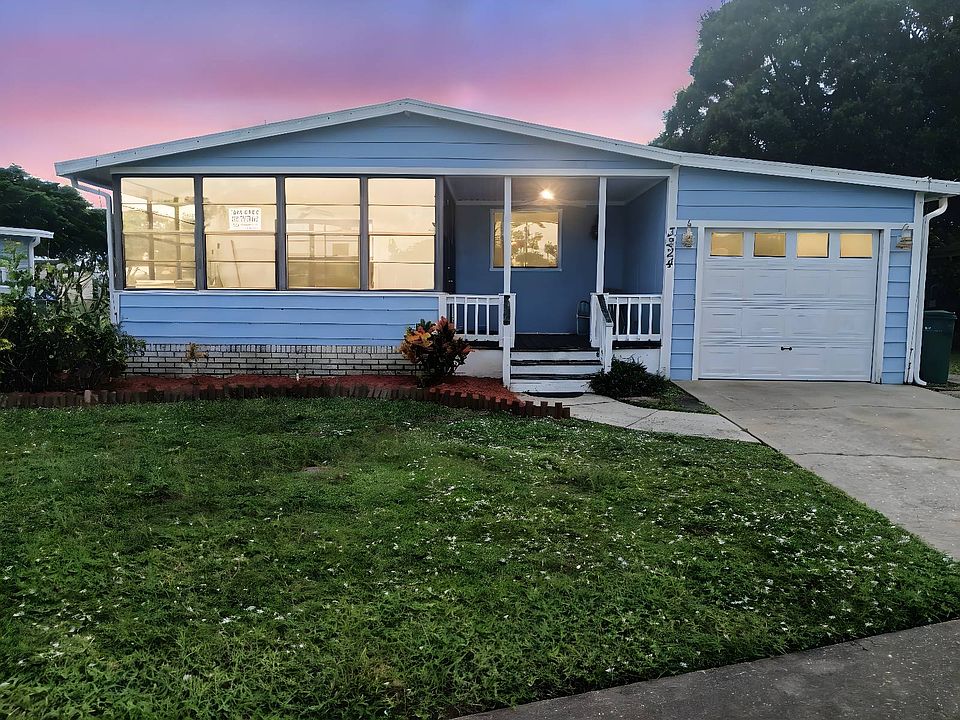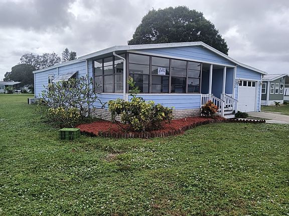 Spacious 2-Bedroom / 2-Bath with a GARAGE located in Lakewood Village 55+ retirement community -- Over 1,220 Square ft. flooded with Natural Light -- This home is on a great interior lot that backs up to Lakewood Village's largest communal open space. Major Appliances Include: Washer + Dryer, Refrigerator, Glass Top Stove w/ Oven and Dishwasher. Featuring Central AC, New Shingle Roof installed (2024), Vaulted Ceilings w an open floor plan, a 10x10 covered front entry porch, and a 10x15 enclosed Florida Room. Lakewood Village's market-rate Base Lot Rent is approximately $850 a month. Don't miss out on a great deal. MUST BE PARK APPROVED. Call today to schedule a showing! Lakewood Village is a desirable neighborhood conveniently located near beautiful, white sandy beaches and just a short drive to the Orlando-Melbourne International Airport. This quiet, age-restricted 55+ community is loaded with communal activities and amenities, including a Fitness Center, Game Room, Heated Swimming Pool, and Shuffleboard Courts, to name a few. Lakewood Village is a fantastic option for great retirement living. All listing information is deemed reliable but not guaranteed and should be independently verified through personal inspection by appropriate professionals. Our company does not and cannot guarantee or warrant the accuracy of this information or condition of this property. Measurements are approximate. The buyer assumes full responsibility for obtaining all current rates of lot rent, fees, and pass-on costs. Additionally, the buyer is responsible for obtaining all rules, regulations, pet policies, etc., associated with the community, park, or home from the community/park manager. Our company is not responsible for quoting said fees or policies.