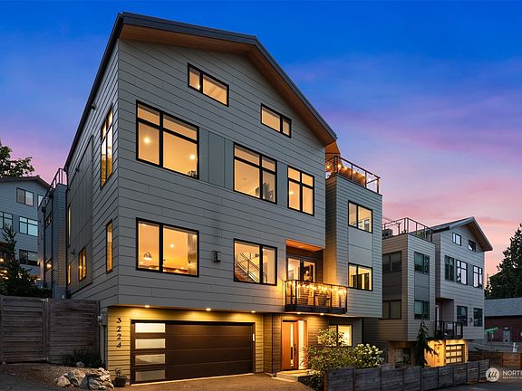 Indulge in easy luxury living at WestBridge, a gated enclave of modern homes in West Seattle's Belvidere neighborhood close to Alki beach, Alaska Junction & WS bridge. Built in 2020, this expertly crafted 5BD/4BA home boasts the largest floorplan in the community and elevated finishes incl. hickory floors, RH lighting & formal dining room. A chef's kitchen w/ Bertazzoni appls and an oversized quartz island serves as the focal point in the sunlit great room w/ FP. Venture up to unwind in the primary suite w/ spa worthy bath or kick things up a notch in the upper level bonus room + spacious rooftop deck w/ day to night mesmerizing views of the city, Elliott Bay & mtns. Other features incl. 2-car gar, A/C, guest suite & easy care fenced yard.