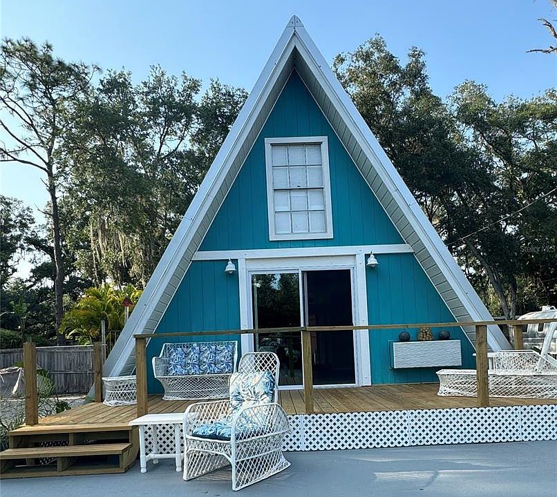 Great opportunity to live and play in the country, yet minutes to everything. Two single family residences on nearly one acre less than five minutes to shopping, restaurants, churches and the beach. The A-frame home features a loft bedroom, reading room and 1 bath. The kitchen nook for dining is approximately 100 square feet, overlooking a fabulous patio with koi pond and fountain. The patio was hand placed with antique bricks originally from Ybor City streets. The cottage offers one bedroom, one bath, one bedroom and a reading room with a view of the rear acreage, manicured with lush fruit trees. Between the two residences you will find an outboor bar; perfect for outdoor living and entertaining. Don't wait to see this property. Multiple offers expected and won't las long.