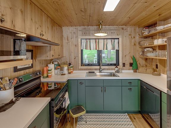 Waterfront Cabin Retreat - Nestled on 1.6 acres with 220' of pristine lakeshore, where half the lake borders state land. This 3-bed, 2-bath cabin has been fully updated in 2024. Features include new windows, kitchen, appliances, and hardwood floors ( as well as new Septic System and Well) . Enjoy the outdoors with a 2-stall garage and additional shed. Full Professional furnishings included.