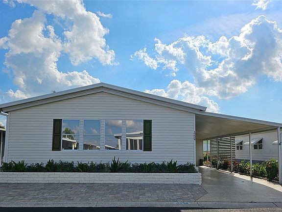 Look no further - This show stopper is a must see! It is evident that alot of love and thought went into updating and decorating this immaculately maintained manufactured home. The 1,558sf 2 bed 2 bath space is drywalled and has been tastefully furnished and decorated - a perfect home for entertaining guest. The formal living area has wall to wall windows, lovely furnishings, an electric fireplace with mantle and a desk space. Just off the living room enter into the large family room that boast high ceilings, comfortable seating, beautiful decor and a 65" mounted TV. The open dining room features gorgeous lighting and a beautiful wood table that expands to allow seating space for 12. The remodeled kitchen is light and bright with stainless appliances, ample refaced cabinetry, granite style counters, beautiful tile backsplash and a breakfast bar giving plenty of additional room for entertaining guest. The primary suite is like a personal retreat with a newer adjustable bed, lovely furnishings and decor, a double walk thru closet with built in storage and an en suite bath with lots of natural light, counter space and a step in shower. The beautiful guest bedroom has luxury finishes to the king bed set and is located just across the hall where your guest can relax in the updated bath after an adventurous day of fun in beautiful Sarasota. The washer/dryer are located in the shed, however, there is an indoor linen space where a washer dryer could be added if desired. The pavers and epoxy drive really highlight the curb appeal. A covered private patio space was added in the back and has a retractable sun shade. Additional updates: Metal Roof Over 2016, HVAC 2021, Water Heater has been moved into the shed 2015, Windows have Sun Guard tinting 2015, Luxury Wood Vinyl flooring, all interior doors, light fixtures and ceiling fans have all been updated. All the area rugs have been custom cut for each space. Plumbing has been updated to pvc and the back half has had the vapor barrier replaced. Located in the ONLY Resident Owned Park in the City limits of Sarasota. The gated 90 acre community boasts LOW MAINTENANCE FEE with its vast amenities, starting with the spacious Clubhouse outfitted with a full commercial cook kitchen, event stage, audio/visual, dance floor, state of the art fitness room, activities hall, library with books/movies/puzzles and a pool table. Outside recreation includes an extra large heated pool with a handicap ramp, a spacious kidney shaped hot tub, ample umbrella tables and lounge chairs and updated shower rooms. Oak trees shade the beautiful park area, picnic tables and a community grill. Additional amenities to enjoy are the community putt putt course, bocce ball, ping pong, horseshoes and corn hole. Oakwood Manor is a vibrant community with numerous social events and activities. Conveniently located adjacent to Legacy Trail and 12 newer pickle ball courts. Just a short drive to our crystal sand beaches, downtown area, the marina, fishing pier, local golf courses, shopping, variety of restaurants, the museum, SRQ airport, SMH and Doctors hospitals. Please note that Oakwood is a 55+, no pet, no motorcycle Park.