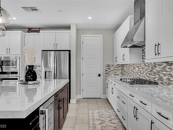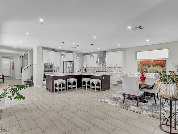 Nestled inside the Inspirada masterplan community, this newly constructed Tri-Pointe residence embodies modern elegance. This expansive layout features 4 spacious beds & 4 baths. One of the highlights is the primary suite on the 1st floor giving you direct access to the outdoor oasis. This quiet retreat has a relaxing water feature & pool/spa. Enjoy your covered patio, fire-pit & bbq area. The gourmet kitchen is equipped w/ state-of-the-art appliances, a large island & wine fridge. The adjacent dining room is perfect for entertaining w/ a picturesque view of the enchanting backyard in full display w/ this open concept floor plan. On the main level you will find your dream office w/ upgraded glass doors & built-in shelves/desk space. Each bedroom is thoughtfully designed w/ upstairs room featuring a balcony. The primary bedroom boasts an en-suite bathroom w/ luxurious tile & a spa-like walk-in shower & tub. Wow, 2 generous closet spaces! Experience sophisticated living at its finest.