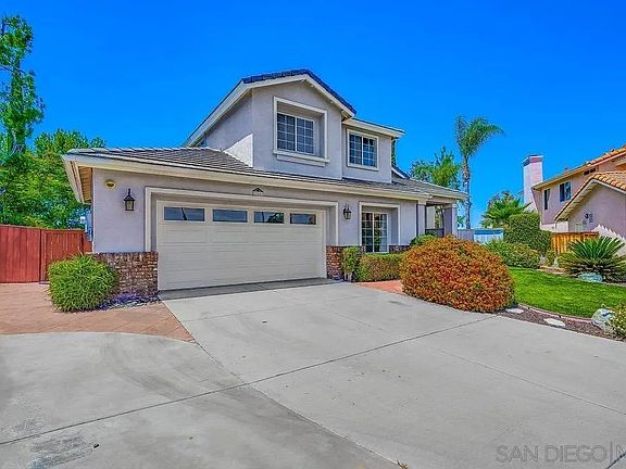 This Gorgeous 5BD, 3BA 2-Story Home at the end of a cul-de-sac in the highly sought after Chardonnay Hills. NEW INTERIOR PAINT AND NEW CARPET! LOOKS GREAT! At an estimated 3228 ft., a professional remodel in 2007 added 744 ft. opening the MASSIVE Kitchen-to-Family room, adding a large center island with a second sink, custom cabinets, an oversized refrigerator, stainless steel appliances and two skylights that stream in natural light. Cathedral beams were installed in the living room giving it the feeling of a European Church. There are 2 BD downstairs, along with an indoor Laundry room and Bathroom. The upstairs Master Bedroom Ensuite has a deck with fantastic views of treetops and local Temecula Mountains. The Master Bathroom has dual sinks, sunken tub, walk -in shower and a large walk-in closet. There are two other Bedrooms upstairs and full BA with a shower -in- tub. The backyard lends itself to hanging out with multiple areas to sit ad relax. The lot is large enough for a a pool. Plenty of space for a garden. The home has tons of extra features, tankless water heater, artificial grass in the front and back yard, 2 HVAC systems and an affordable Solar Lease to be assumed by buyer. The HOA offers 2 pools, covered patios, volleyball sand court, 2 tennis courts, driving security, Basketball court and walking paths. Minuets away from Temecula Wine Country, restaurants and shopping located in the amazing Temecula Valley school district.