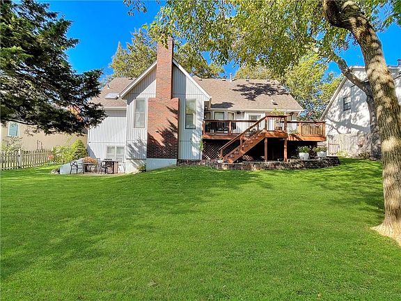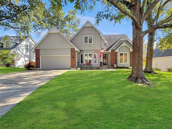 Welcome to 3225 Argonne Ave, a stunning 1.5-story home in the heart of Blue Springs, MO! This beautifully maintained property boasts a large deck overlooking a private, fenced backyard with a sprinkler system, keeping your outdoor space lush and vibrant all season. Step inside to an impressive entry that opens to a spacious great room with vaulted ceilings and a striking masonry fireplace. The main floor is graced with luxury vinyl plank flooring and a formal dining room that beams with natural light.
