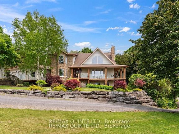 Welcome to 3225 County Rd 8, located in beautiful Waupoos, Prince Edward County. This RARE + EXCEPTIONAL offering is nestled on 58 acres of privacy with breathtaking Southward vistas of Lake Ontario, Waupoos Island and some of the oldest vineyards in PEC. This high quality, custom built home by well-reputed local builder Eric Helmer is perched atop the Waupoos Escarpment - positioned masterfully to delight in the spectacular views. Underlining the uncompromising build-quality, enjoy three levels of radiant in-floor heating throughout. The welcoming main floor features an open concept kitchen with gas stove, stainless steel appliances, walk in pantry w/ new updates including a tasteful quartz countertop & backsplash. Enjoy preparing meals and entertaining around the large butcher-block top island + cozy up to the warm wood stove of this fabulous kitchen. Share special meals w/ family and friends in the formal dining room or relax in the sunken LR w/ soaring ceilings full of natural light. This level also features a main floor bedroom and full bath. An oversized mudroom w/ shower & sink, allows for easy seasonal transitions through the double attached garage. The wrap-around glass porch invites you outside to relish in those morning coffee sunrises or wind down to catch the glow of evening sunsets. The upper level offers a spacious primary w/ stunning waterviews, two walk-in closets, private ensuite, two additional bedrooms + full bathroom. Enjoy games and movie nights in the lower level family room complete w/ wood-stove, an extra bedroom for guests, full bathroom and plenty of storage for all of your toys. Step outside to find a detached self contained fully renovated charming guest house (2024) offering extra separate living space. A magnificent custom built barn provides endless opportunities for storage, vehicles + hosting memorable events. Adjacent to the renowned County Cider Co. close proximity to wineries, orchards & marina and only a 15 min drive to Picton.