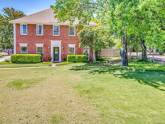Charming 4 bedroom 2.5 bath home in desirable Hillwood! Located on a fabulous cul-de-sac lot, this home offers a separate formal dining room and living room with beautiful hardwood floors and large windows with wood shutters. Exposed beams, built-in bookcases, wood-burning fireplace and French doors complete the wonderful family room. The light filled kitchen with hardwoods boasts stainless appliances, numerous cabinets, a work island and leads into a spacious bonus room/playroom with wood flooring and double storage rooms. Outside storage is heated and cooled. Upstairs features a Master suite and 3 additional guest bedrooms - with two rooms having built-in bookcases. Wood floors and new carpet throughout the upstairs. Laundry room is spacious and adjoins a mud room, office or simply extra storage space. Great private backyard is fully fenced and includes a wonderful covered patio with brick pavers - perfect for entertaining! Incredible value for this comfortable home convenient to shopping, restaurants and the interstate.