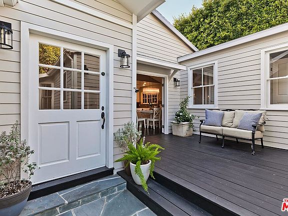 Hedged and Gated Property in a fabulous location on a charming street. Large frontage affords plenty of parking and 2 car garage. Deck opens to firepit and lawn area -decomposed granite with lovely potted plants and BBQ. House features many upgrades such as hardwood floors, high ceilings with skylights in main living areas, stunning gourmet kitchen with Viking appliances. There are 3 bedrooms, plus office or 4th bedroom. The beautiful master bedroom is in it's own wing with 2 walk in closets, updated bath with spa tub and large separate shower. There is also a guest house which has it's own bathroom and shower and could be an ADU according to the seller who has investigated this process. There is a lovely grassy yard currently used as a play area.