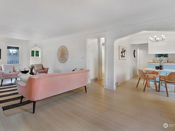 Classic 1922 Craftsman on a quiet Wedgwood street. This 4 bedroom home has a warm, wonderful feel with a cool floor plan that you don't often see. Spacious entry way, enormous living room, formal dining room, primary bedroom with an en suite bathroom & upper level with 3 bedrooms. Charming period details include unique archways, coved ceilings and fir floors. Updates include new flooring, fresh paint inside & out, new tile in bathrooms plus kitchen with updated tile backsplash and counters. Lots of storage throughout and unfinished basement with endless potential. Gorgeous, private backyard. Six blocks from coveted Wedgwood Elementary School.