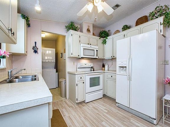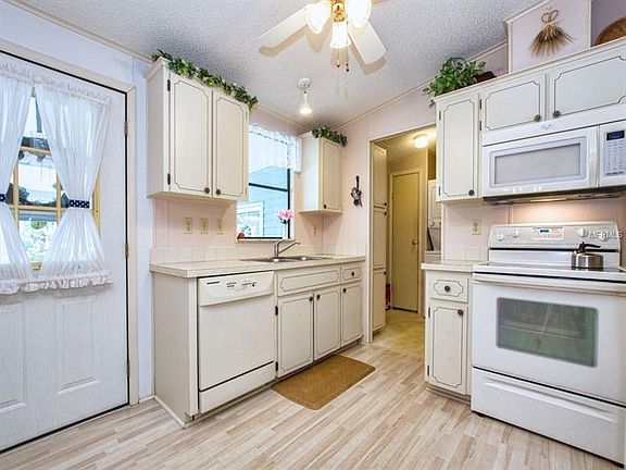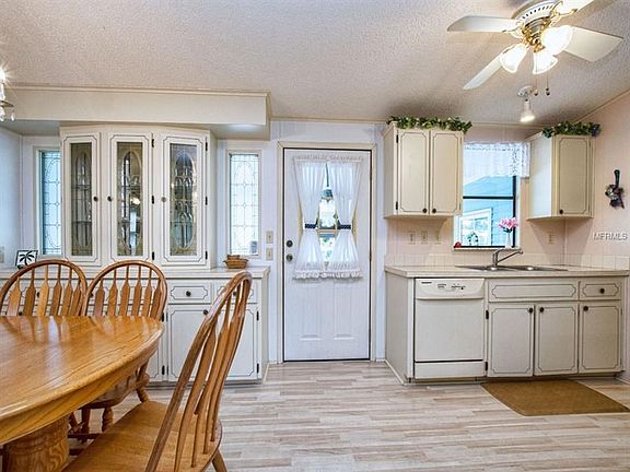 This super park not only welcomes your pets, NO lot fees, you own your lot. This 2 bedroom, 2 bath furnished home is vacant and waiting. Home has updates including new washer/dryer and recent replacement windows. Open floor plan with living room opening to the lanai, shed plus an extra utility building to store your golf cart. Fox Run features two pools, shuffle board court, club house, marina, private boat dock and a new boardwalk.