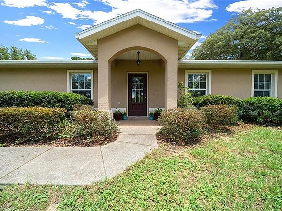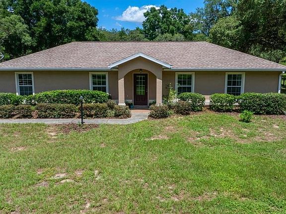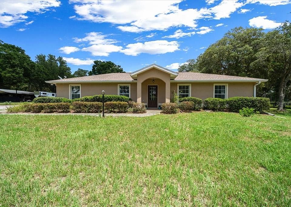 Exceptional Equestrian Property in Marion County's Coveted NW Corridor. Don’t miss this rare opportunity to own a turnkey horse farm located in one of the most desirable equestrian areas of Northwest Marion County. Set on nearly 7 high and dry acres. The land is beautifully laid out with well-maintained pastures enclosed by safe, no-climb wire and top board fencing—ideal for turnout and peace of mind. There is perimeter fencing around the entire acreage. Mature oak trees are strategically placed throughout the property, offering shade and natural beauty, including in the riding arena area for added comfort during warm training days. The expansive sand arena space could easily accommodate a jump course, dressage arena, or barrels. The concrete block home offers 3 bedrooms, 2.5 baths, and a spacious split floor plan designed for comfort and convenience. Recently updated with a brand-new roof (2023) and HVAC (2025), and pressure tank (2024). The home features hard surface flooring throughout, an inside laundry room, and a large storage room. A bright and airy sunroom provides a serene spot to enjoy your morning coffee while overlooking the rear paddocks. Equestrians will appreciate the thoughtfully constructed barn, which includes 6 large stalls, concrete center aisle, a separate air-conditioned tack room, a dedicated space for shavings, and plenty of covered storage for equipment and feed. The adjacent round pen is shaded for comfortable groundwork sessions, and the wash rack adds to the farm’s functionality. A wide, gated entrance makes trailer access a breeze, with plenty of space to turn around and safely unload horses. Additional amenities include an RV hookup—ideal for seasonal guests or on-site help. With no HOA restrictions and just minutes from the World Equestrian Center (16 miles), HITS (16 miles, Rainbow Springs State Park (5 miles), shopping, feed stores and more, this property truly offers the best rural charm and modern conveniences.