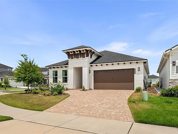 VA Loan Assumable at 4.5% RATE by a Veteran with available entitlement! Welcome to the award-winning resort community of Oakmont where this beautifully-appointed 2021-built home stands proudly on a nice corner lot. Surrounded by wide, inviting sidewalks, the home makes a striking impression with its sleek contemporary elevation. A paver-lined driveway and walkway lead to the tall, elegant front door, setting the tone for the stunning interior that awaits. Find the guest beds and hall bath on your left. Step into the bright and wide gallery foyer, and this home gracefully unfolds into the heart of the living space-an open concept great room, kitchen, and dining area wrapped in glass with its generous windows and stackable sliders. The gourmet kitchen is a true showpiece, hosting custom and tasteful finishes, and impeccable design that's sure to inspire envy. The beautiful kitchen and island overlook the great room, featuring a statement wall with gas fireplace. The space is grounded by luxury vinyl plank flooring that adds both style and durability throughout. Retreat to the primary suite tucked at the back of the home, where you'll find a generously sized bedroom that flows into a luxurious bath. Enjoy a large glass-enclosed shower with niche, double vanities with a dedicated make up area, and a spacious walk in closet. Step outside to a fully fenced backyard or lounge at your spacious paver-lined covered porch- perfect for relaxing or entertaining. Experience the exceptional lifestyle Oakmont offers, with resort style amenities including stunning pools, a fully equipped fitness center, dance/yoga studio, tennis courts, BB court, volleyball, upcoming 4 Pickleball courts (pls verify), a scenic turtle preserve. Enjoy expansive green spaces and a beautifully designed banquet room that rivals those of luxury hotels. The property taxes listed includes non-advalorem assessments of CDD $2864.59/year, fire/sewer. The actual property tax is $7371.38. Call now for a private tour!