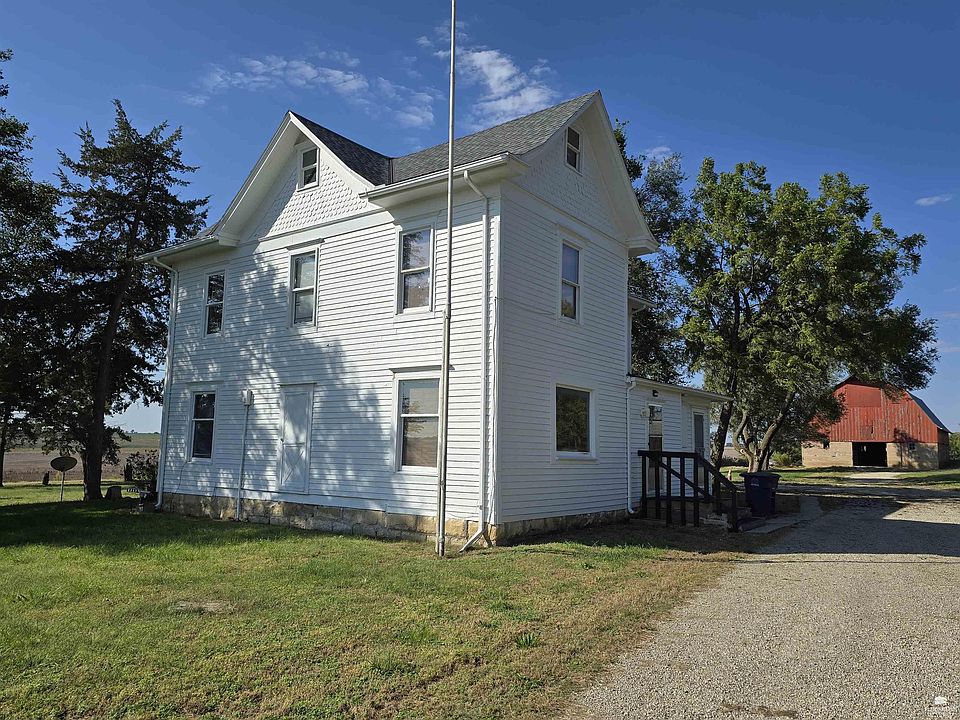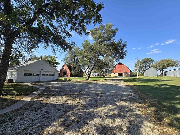 Minutes from Milford Lake and the amenities of town, enjoy country living and embrace the charm of this 1910 Farmhouse, situated on 3.2 acres. The possibilities are endless! Main floor features living room, kitchen with breakfast bar, dining room, large bedroom, sun-room, and the start of a bathroom/laundry room. The 2nd level features a full bathroom, 2 bedrooms, and a bonus space. The 3rd level is host to 2 additional rooms. Outdoors has great views, detached 2 car garage, large 62x40 steel building, and 3 other barns/sheds. Call Larry Johnson with ReeceNichols Cornerstone to schedule your tour today. 785.223.1352. Property to be sold As-Is.