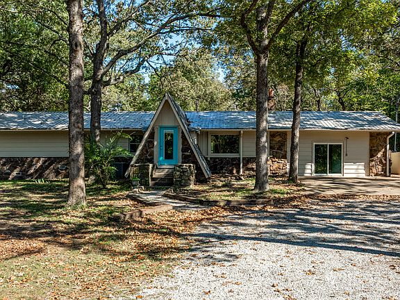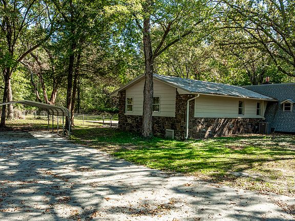 QUIET AND PEACEFUL OASIS...this beautiful property offers a comfortable country lifestyle and convenient location on 1.5 acres just minutes from Walmart, Lowes, and everything Grove has to offer. This newly remodeled 4 bedroom 2 bathroom home boasts two spacious living areas along with a cozy wood-burning fireplace and an open-concept layout seamlessly connecting the living, kitchen, and dining areas. Notice new flooring, paint, lighting fixtures, stainless refrigerator and range. The master suite is large and comfortable while three additional bedrooms offer versatility for guests or a home office. The property also features a detached 24'x30' garage/shop as well as a detached 18'x20' two-car carport, a walk-in above-ground cellar/safe room accessible from inside the home, two hot- water heaters, newer HVAC, and a metal roof. Enjoy this serene outdoor oasis complete with a new deck/back patio area creating a tranquil retreat for relaxation and enjoyment along with modern amenities, including electrical services provided by Rural Electric Cooperative (REC) and BOLT fiber-optic internet for reliable connectivity. (All measurements approximate).