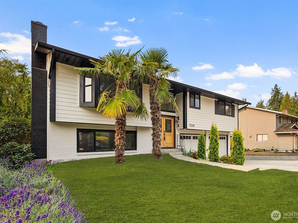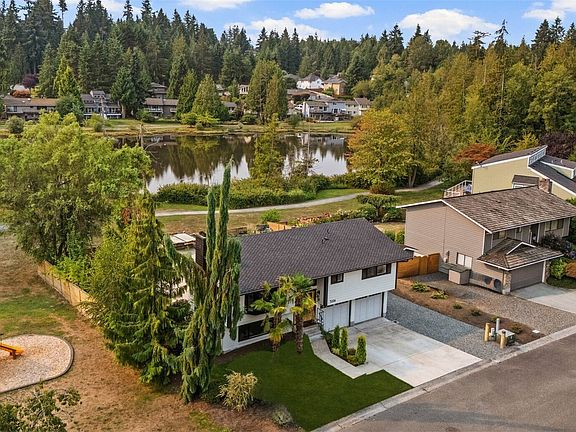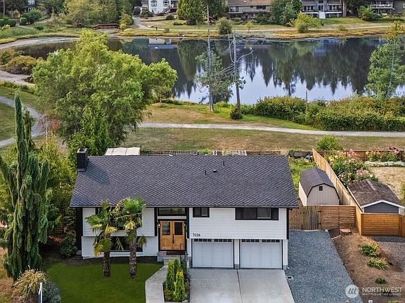 Lovely and luxurious 4BR/3BA home in Hilton Lake community with sweeping 180-degree waterfront lake views and a huge view deck. Fully updated in 2020, with new designer kitchen, new flooring, updated bathrooms, fresh paint inside & out, and a new roof! Quartz slab counters in the kitchen with matching bath surfaces. Both main-floor bedrooms open via sliding doors to a large back patio. Fenced, flat backyard with gate to the paved lakeside walking trail, with scattered picnic benches, a pickle ball court and tennis court! Watch the ducks on the lake, and take a stroll or jog every day in your private neighborhood! A little play park is right next door! Everett School District, close to shopping & restaurants.