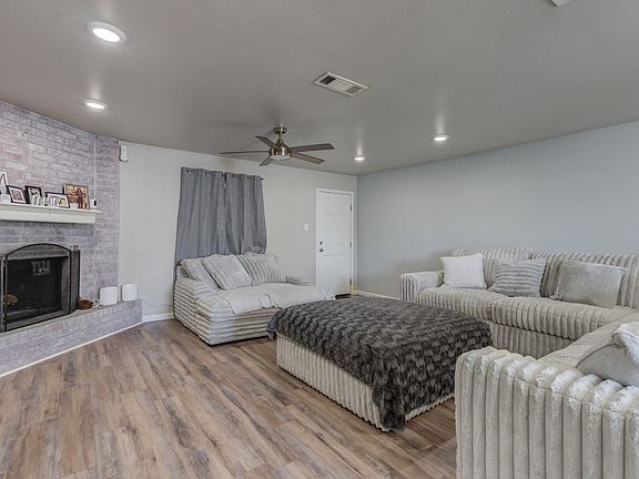 Exceptional updates and thoughtful design come together in this South Lubbock home. From the moment you walk in, you'll notice the open layout that connects the living and dining areas—perfect for hosting or just enjoying everyday life. Modern light fixtures, recessed LED lighting, and vinyl plank flooring give the space a clean, updated feel. The kitchen features granite countertops, a breakfast bar, stainless steel finishes, and newer stainless steel appliances that tie it all together. The isolated primary suite is spacious and bright, complete with a MASSIVE walk-in tiled shower, glass door, and an oversized bathroom that feels like a private retreat. Out back, there's a large yard with a pergola—ideal for quiet evenings, cookouts, or hanging out with friends and family. Every detail has been thought through, from the generous bedrooms and storage to the utility room with space for a freezer. This one checks all the boxes.
